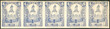 Yvert 12, 1898 4c., PROOF in ultramarine blue (not adopted), strip of 5 formed by positions 56-60, excellent!