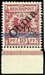 5 pfennigs on 10 Pf diagonal overprint perfectly mint never hinged with overprint in of the rare type 3 b, the only twice in the sheet occurs. Signed on the base Bothe BPP and photo expertize Dr. Hardening "very well perforated and in faultless, mint never hinged condition. " Michel 2.500.-