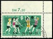 10 pfennigs Pioneer meeting, watermark 3 Y - defective "broken out letter - 2 D by German Demokratic Republik (East Germany) missing" (right besides the RWZ DM 7.50), corner margin piece top right, used with first day special cancel from Berlin, very fine, photo expertize Henry Mayer VP "the condition is perfect. ", Michel not listed