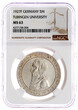 The auction start price is 10% below the estimate. The hammer price is the basis for the calculation of the buyer‘s surcharge. The buy price is hammer price plus 22% surcharge (relevant VAT included in the premium). All buyers from countries outside the EC pay a fixed buyers fee of 19%. In case buyers from abroad (no EC country) export the goods by themselves or third parties, the relevant VAT will be charged but refunded by presentation of the legally export certificate. In case we export these goods the relevant VAT will not be charged. For gold coins which are free of VAT, we charge a buyer‘s fee of 17%. All other auction lots are acharged with differential taxation.
