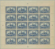 1901 COUNTER SHEET / Mi.21, Emperor´s Yacht 2M black-blue, complete printing sheet of 20 stamps on paper without watermark; previously hinged in margin out of stamps, stamps mint never hinged, usual production folds in paper, cat. only as single stamps 2.400EUR, rare