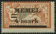 1920, 4 m. auf 2 Fr. rötlichorange/hellgrünlichblau, Type I, mit