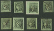 GJ.4, yellow-green, reconstruction of the block with the 8 different types, all pen-cancelled and of VF quality!