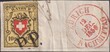 T.27 A1-O, Briefstück von ZÜRICH: 12.DEZ.1850 (Nachmittag) wunderschöne Rayon II (gelb) mit leuchtenden Farben, sauber mit P.P. entwertet (kreuzfrei!) links wenig berührte Stelle sonst gut bis meist breit geschnitten, ein attraktiver Briefausschnitt in sehr guter Erhaltung und Marke mit leuchtenden Farben. Kat: 650.-+