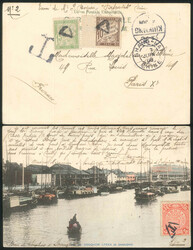 1d もっと見る 1900, from Durban, Natal to Vienna, Austria, envelope franked with 1d red Queen Victoria issue of Natal, tied by DURBAN 28 AP 1900 cds, underfranked for international transmission and struck with Natal 15c in circle due marking, taxed on arrival with combination franking of 10h and 20h brown Austrian postage due stamps, tied by blue WIEN 1/1 BESTELLT 21.5.00 9–10½ V cds (vormittags), original address incomplete, triggering attachment of two official Bestell-Notizzettel dated 1900 with handwritten delivery clarification, routing remarks and crayon notations, final delivery rerouted to Kandlgasse 23, Vienna, reverse with WIEN 6/1 56 BESTELLT 22.5.00 7–8½ N (nachmittags) and WIEN 7/1 60 BESTELLT 23.5.00 10 V (vormittags) backstamps documenting internal distribution attempts, exceptional example of underpaid British colonial mail subject to full Austrian postage due and redelivery protocol, a rare and richly marked cover illustrating bureaucratic precision in the Dual Monarchy’s postal system, ex Kugel, XF! Estimate 300€.